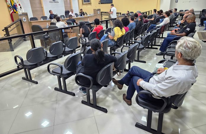 A Câmara promoveu nesta terça-feira (23/04) uma audiência para debater a segurança pública em São Lourenço e a possibilidade de criação de uma Guarda Municipal (GM) ou Patrimonial. O objetivo foi saber a opinião dos cidadãos sobre o tema como um primeiro diagnóstico local. O evento foi coordenado pelo presidente da Casa Legislativa, William Rogério de Souza (SOLIDARIEDADE). O Delegado Regional de Polícia Civil, Marcel Junqueira Neves, e o Major Breno Thamer, que representou o 57º Batalhão de Polícia Militar, estiveram ao lado dele para responder questionamentos e apresentar dados. Também compareceram os vereadores Cristiano Valério (PSDB), Daniela Bacha (PDT), Marisol Gomes (PRTB) e  Ricardo Luiz Nogueira (PSDB).